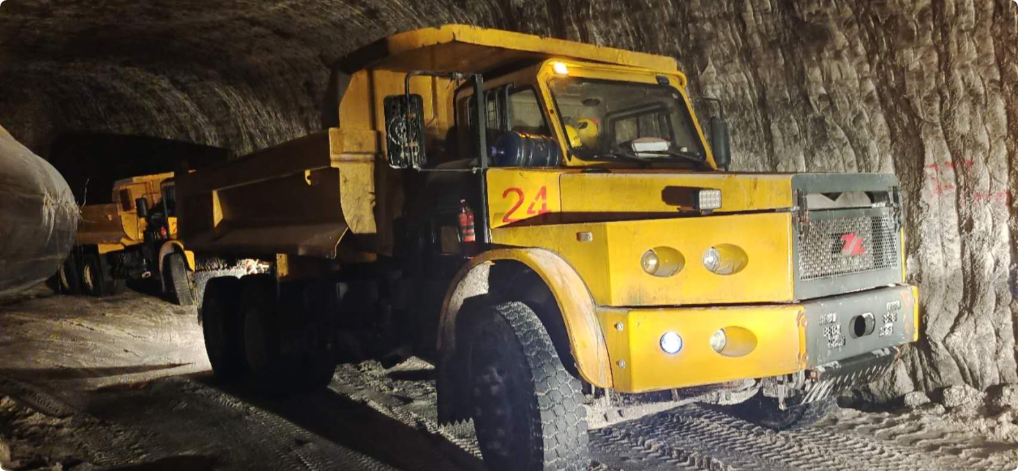 適用于井采礦山斜坡道運輸?shù)膶S迷O(shè)備。 安全可靠:發(fā)動機排氣制動,大扭矩液壓助力轉(zhuǎn)向器,單邊長頭駕駛室、骨架蒙皮的結(jié)構(gòu)、駕駛室和貨箱帽檐雙Fop&Rop結(jié)構(gòu)等安全措施保障運行安全無憂。